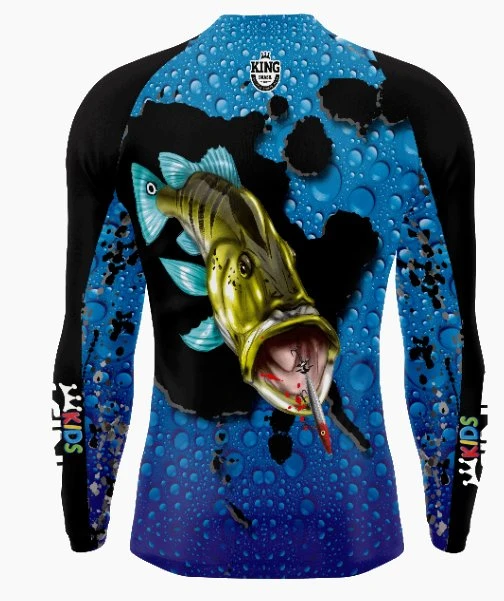 Camiseta de manga larga sublimada para niños Fishing King Brasil con FPS 50+.